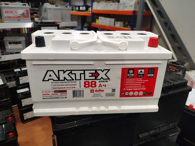 Автомобильный аккумулятор АКТЕХ CLASSIC 6СТ-88.0. Емкость — 88. Габариты — 315x175x175. Полярность — Обратная. Пусковой ток — 850. Купить АКТЕХ CLASSIC 6СТ-88.0 в Москве в интернет-магазине со скидкой!